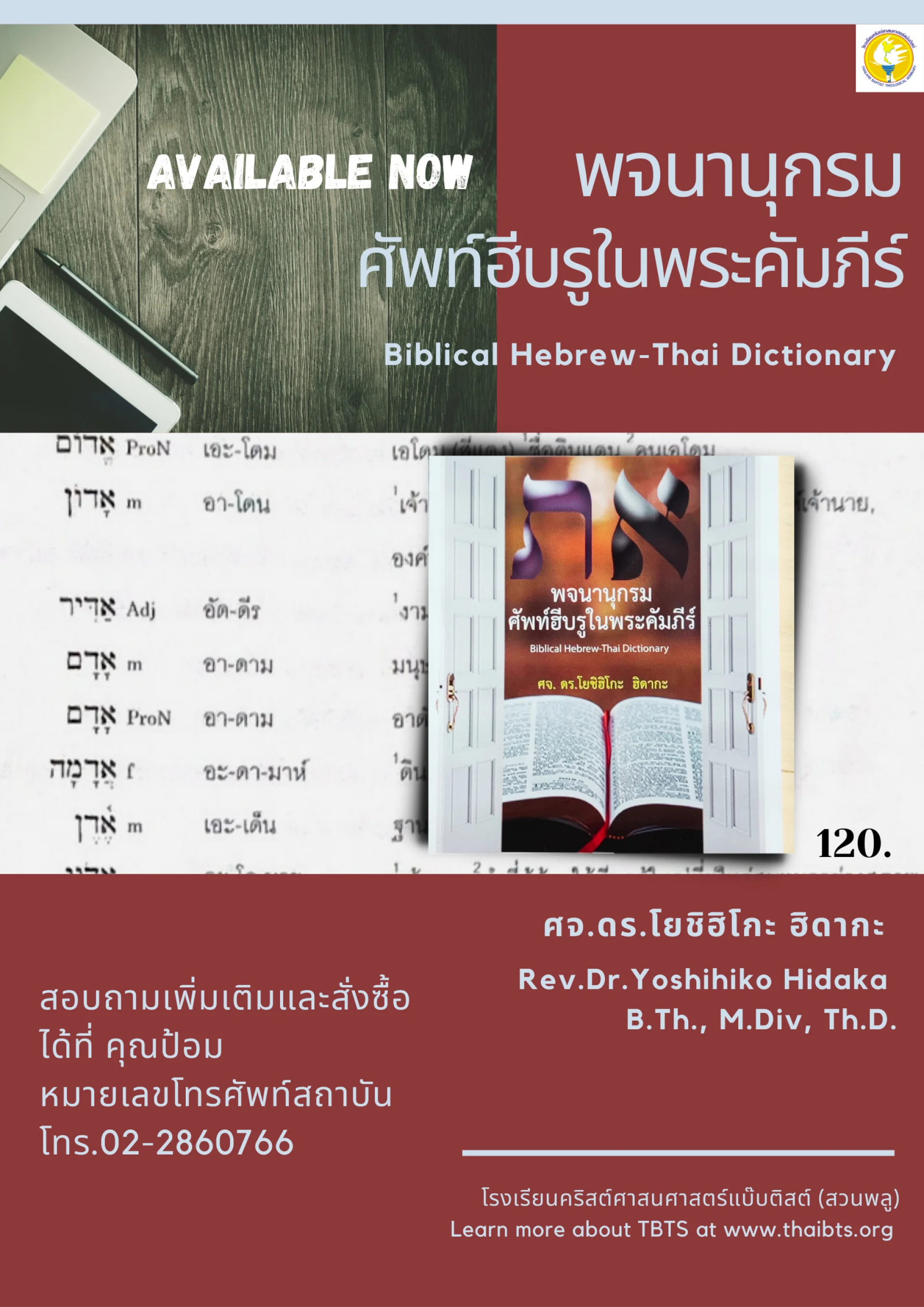 หนังสือ พจนานุกรมศัพท์ฮีบรูในพระคัมภีร์ เล่มนี้ จัดทำขึ้นเพื่อเป็นเครื่องมือหนึ่งซึ่งจะช่วยให้ผู้เริ่มต้นศึกษาภาษาฮีบรูของพระคัมภีร์ภาคพันธสัญญาเดิมได้เรียนรู้ความหมายของ "ศัพท์ฮีบรูที่แปลตรงมาเป็นภาษาไทย" ในหนังสือได้รวบรวมศัพท์ฮีบรูไว้ทั้งหมด 1,161 คำ