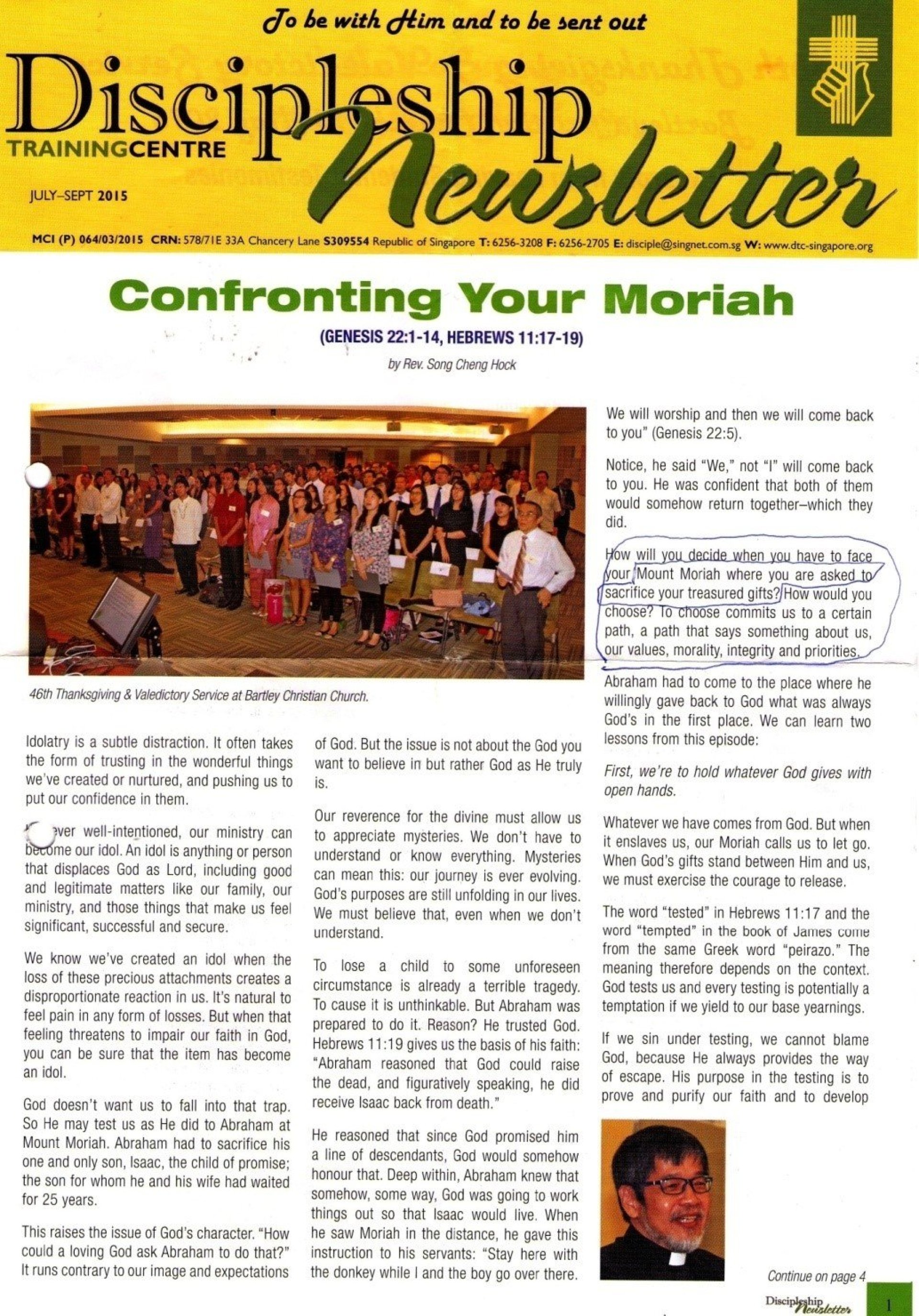 สิ่งใดที่เรามีก็มาจากพระเจ้า แต่เมื่อมันทำให้เราต้องตกเป็นทาสแล้วละก็ โมริยาห์ของเราก็ร้องเรียกให้ปล่อยสิ่งนั้นออกไป เมื่อของประทานต่างๆ ของพระเจ้ามาตั้งอยู่ระหว่างพระองค์กับเรา เราจำต้องใช้ความกล้าที่จะปล่อยไป